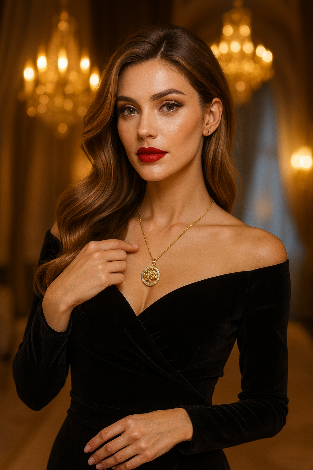 Um colar feminino elegante e luminoso, feito em aço inoxidável polido com opção em prata ou dourado. O pingente redondo exibe uma delicada Árvore da Vida esculpida com precisão, adornada por zircônias transparentes que brilham suavemente sob a luz. A corrente de elos finos adiciona um toque moderno e refinado.